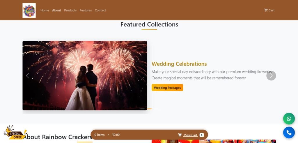 At Arbitechnology, we specialize in creating powerful and user-friendly e-commerce websites that help businesses grow online. One of our proudest achievements this year is the successful launch of Rainbow Crackers π β a cracker website developed using PHP exclusively for Diwali 2025.